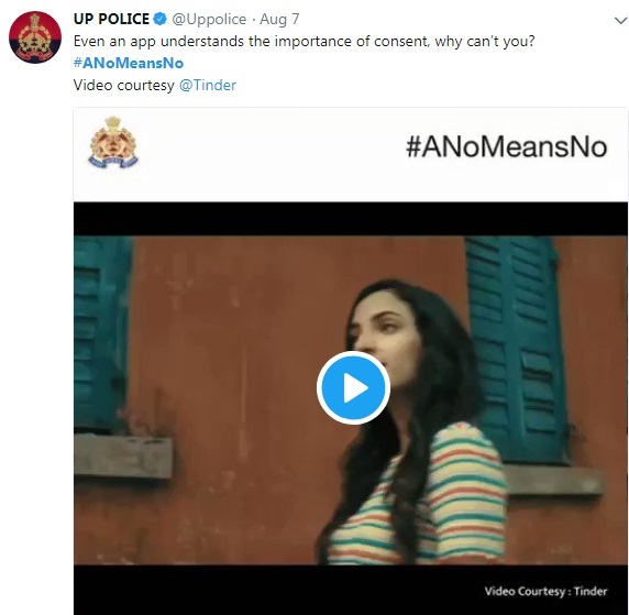 The Idea came from a dating app ‘Tinder’. UP Police shared a video clip on its official twitter handle on August 9 with the caption saying: “Even an app understands the importance of consent, why can’t you? And it was an instant hit.â€